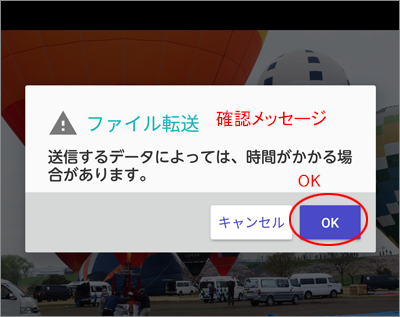 ファイル転送の確認メッセージが表示されます。