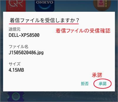 送信元、ファイル名など確認し「承諾」を選択します。