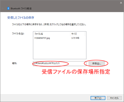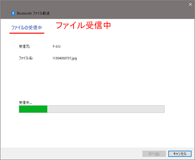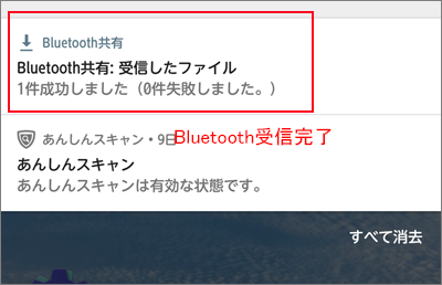 Bluetooth接続によるファイル受信の完了です。