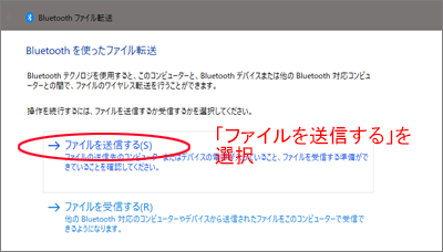 なお、ファイル送信の前に機器間のブルートゥース接続は、ペアリングできているものとします。