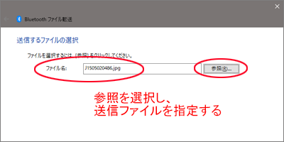 「参照」を選択し、送信対象ファイルを指定する。