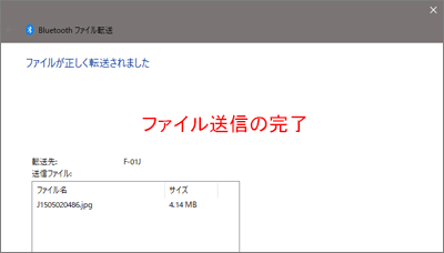 これでAndroid系スマホからWindows系パソコンへブルートーゥス接続によるファイル送信は終わりです。