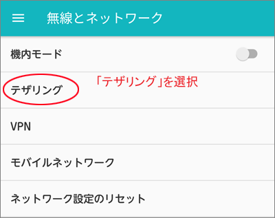 テザリングを選択します。