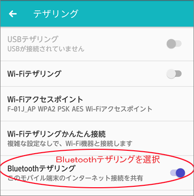 「Bluetoothテザリング」を選択します。