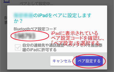 タブレット側にペアリング確認の画面が表示されます。