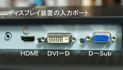 この例では、デジタル入力としてHDMIとDVIがあり、アナログ入力としてミニD-Sub(VGA)の3種類があります。