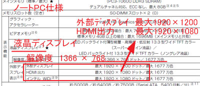 (ノートPC仕様)表示機能 外部ディスプレイコネクタ(アナログ接続)あり