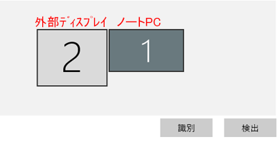 左にノートPC「1」、右に外部ディスプレイ「2」が表示されます。