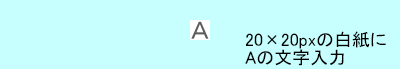 20×20ピクセルの白紙画像に「A」を入力し表示しています。
