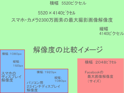 ちなみにスマホ・ディスプレイの解像度、カメラの画素数、撮った写真画像の解像度、Facebookにアップできる画像の解像度などの関係ってわかります?